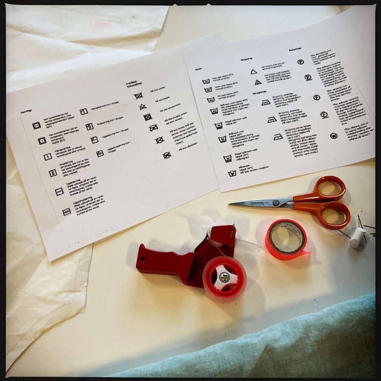Unsere Kursleiterin hat für alle eine Liste der Pflegehinweise, die sich so auf Kleidungsetiketten finden. Viele (die meisten) der Symbole kannte ich nicht. Meine Vokabelliste wächst.