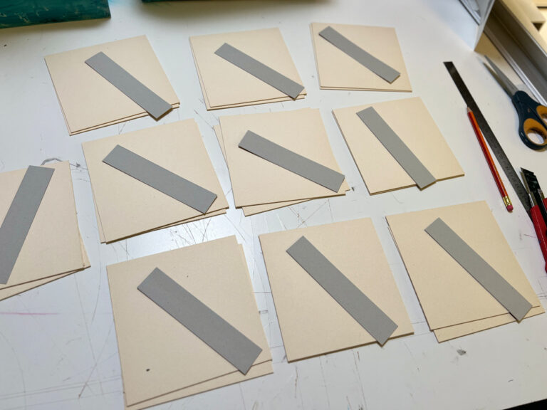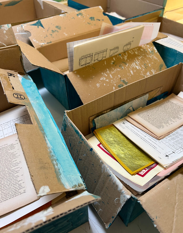 Material für Buchseiten kommen in die Kisten…