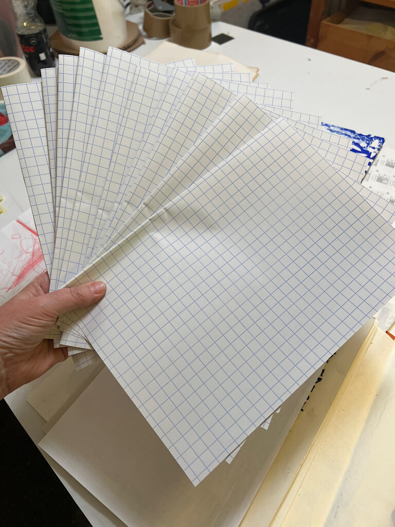 Ich stehe auf Papiere mit unterschiedlichen Linien oder Kästchen. Die machen sich auch immer gut im Papiermix. Ab damit.
