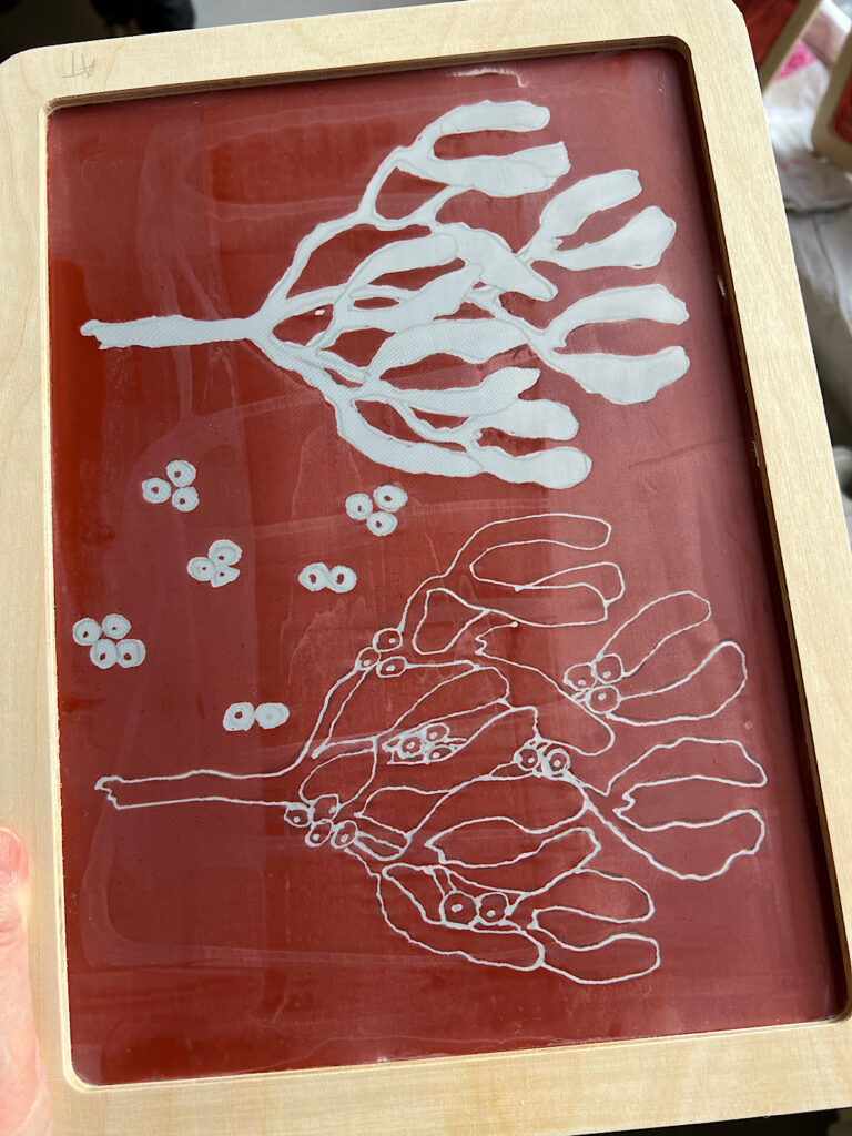 In Kombination mit belichtetem Sieb von mir. Den Druck hat Anna gestaltet. Ich glaub, ich habe es falsch herum gehalten…