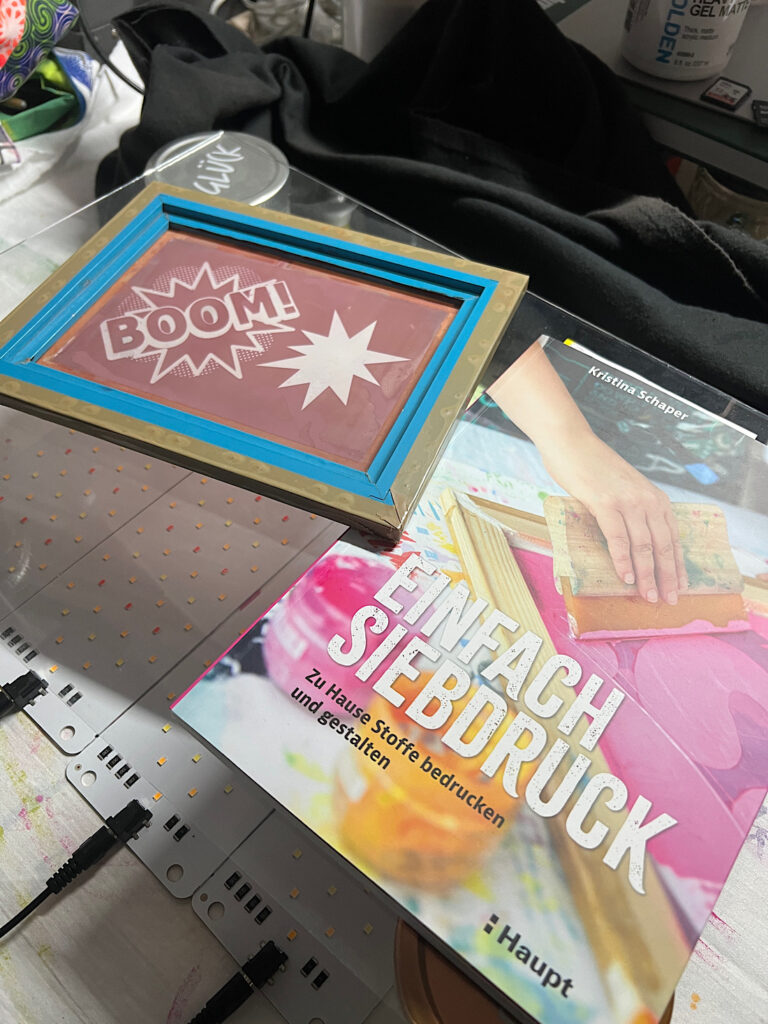 Zackboom und fertig belichtet ist ein neues Minisieb. Eine Demonstration mit Beschichtung und Belichtung mache ich immer live am Filmtisch während des Kurses.